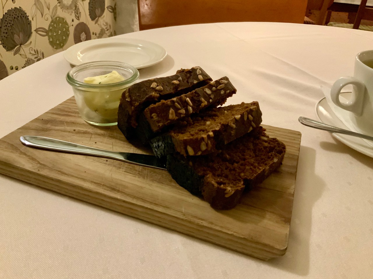 At this place they make their own bread and one Estonian bread in particular is black, soft and seeded. Served ever so slightly warm as it comes towards you, you get a waft of sweet treacle flavour almost like ginger bread. On eating the seeds are soft and nutty and this is complimented by the chive butter sweet onion flavour they serve with it. I am not a big bread eater, but have become very partial to this, maybe because its half cake …. Must google it, and make it at home. It is very similar to the Finnish bread and mighty fine. Second thoughts maybe not a good idea to make it at home?