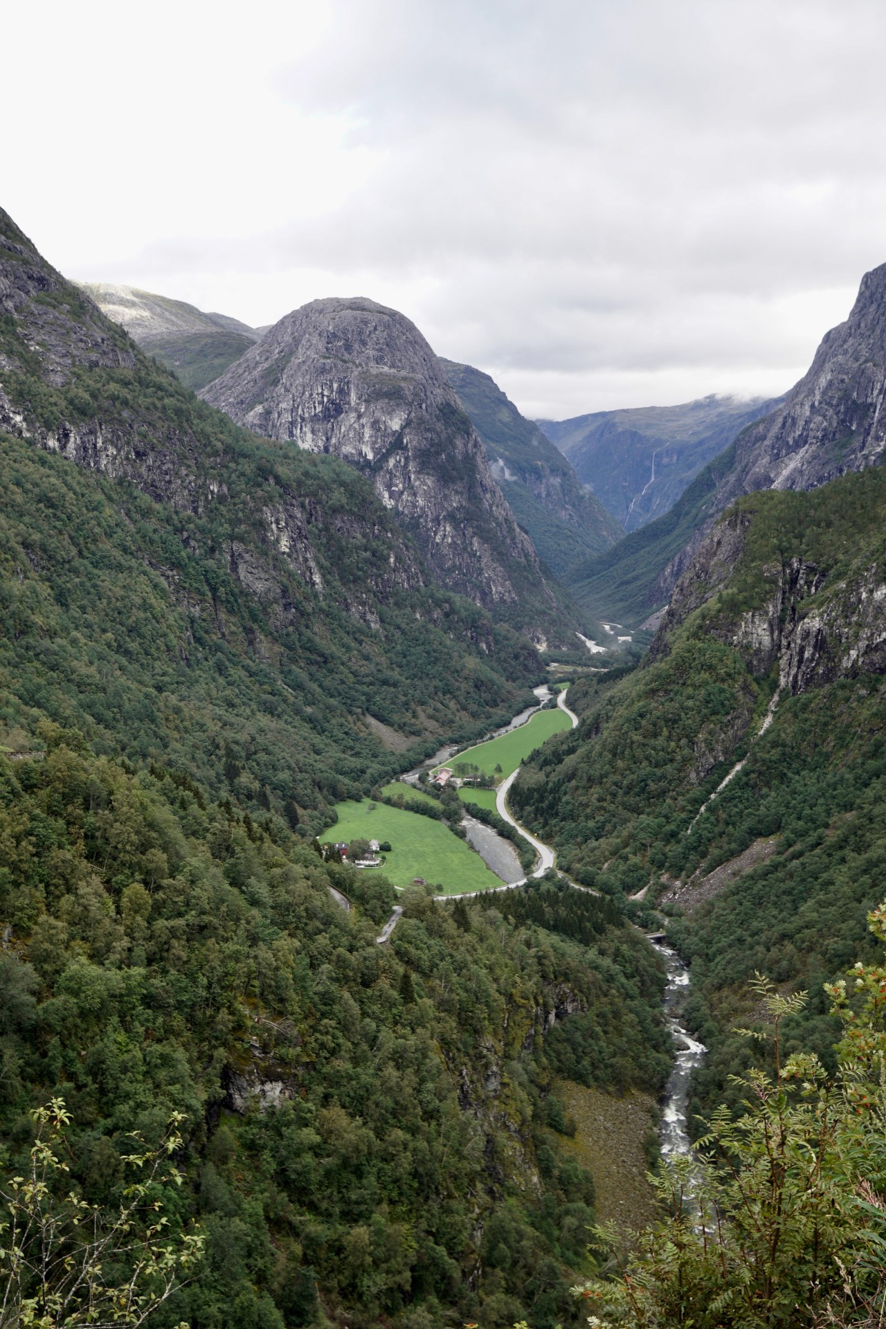 This also meant we couldn’t fit in the Stav church on the way home, but we did go through a series of tunnels – one was 11km long, to the other side of the fjord where the boat trip finishes, and then up the valley to an historic lookout point by a hotel called Stalheim. The hotel is very grand and has been there since around 1700. They are happy for you to go to the garden and take in the view and then use the steepest road in Norway with 18% grade and corkscrew turns past several beautiful waterfalls back to the valley. On the way up we took a wrong turn and tried to drive up this road – thinking it was two way – until we met a bus who set us right. Whoops.