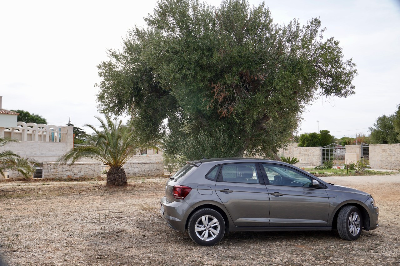 Driving in town is harrowing – I think more for me than for Vern as I am like a jumpy racehorse that needs blinkers as I freak at the cars and scooters coming from all directions whilst Vern keeps his eyes steady in front like a draft horse. As a pair though we compliment each other and despite a couple of missed turns we have managed really well. Yes we are getting a feeling of accomplishment, but its darn exhausting – venturing out and battling the chaos, the language barrier, the uncertainty of where you are going – is it a one way, a two way, a no go down there, roundabouts that don’t make sense. An environment where there are no rules when entering or exiting except sheer iron nerves. Oh and where are the traffic lights to help control all of this? Our car outside our home, under an olive tree.