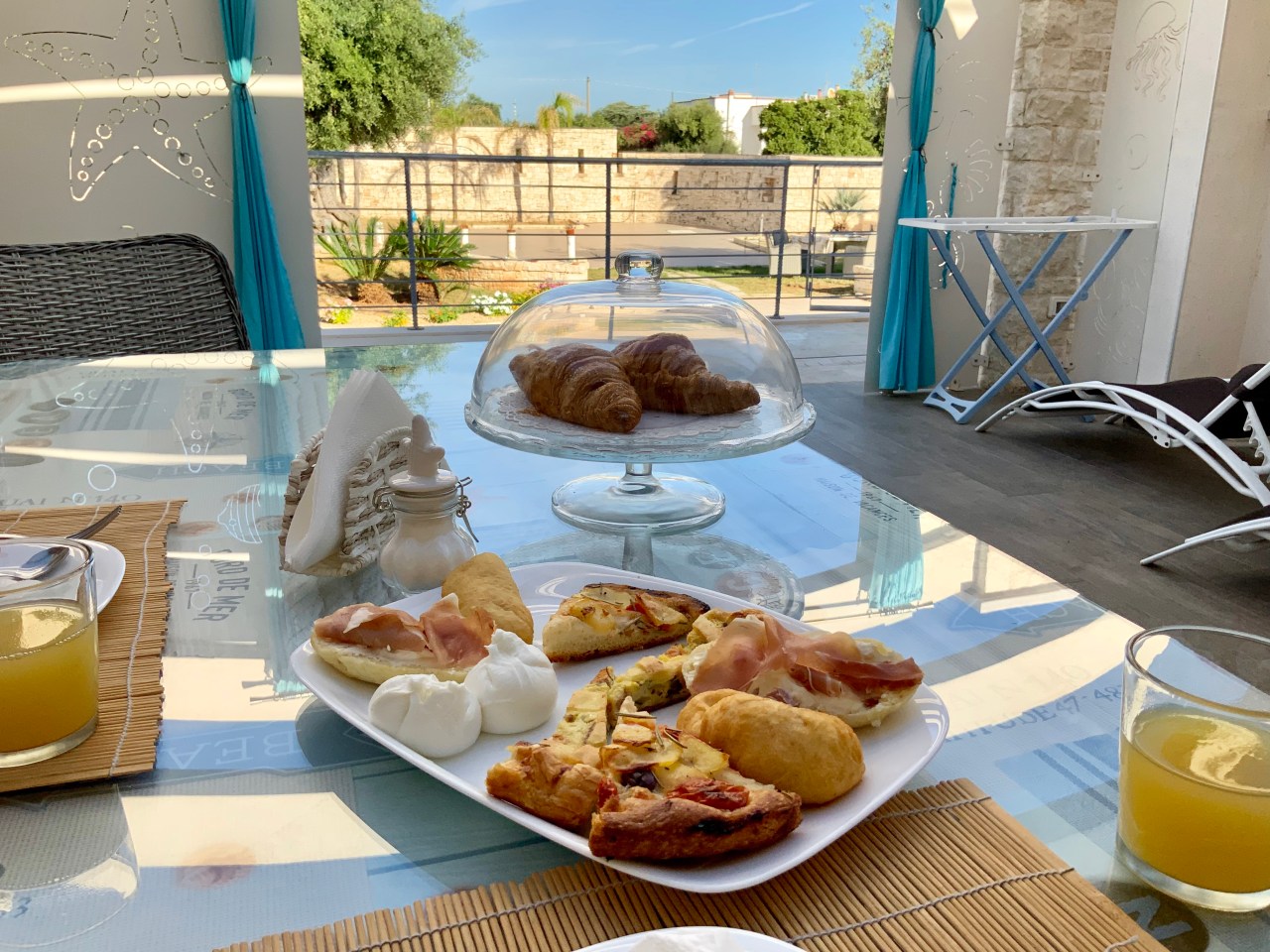 The bed is still not up to my comfort level, bouncy hard verses rocks and no blankets – just a light cover so with the aircon on it actually gets a bit cold. Suffice to say between the pair of us with our colds still no better and hard beds our sleep is not as restful as we would like. Its a shame as it is lovely and peaceful here. Today is the first of our special breakfasts prepared by Marielle, who serves it on the deck from 8:30 onwards. Every day is going to be different and is a selection of local products and her hand made specialities. The little white mozzarella things are AMAZING – more on them later.