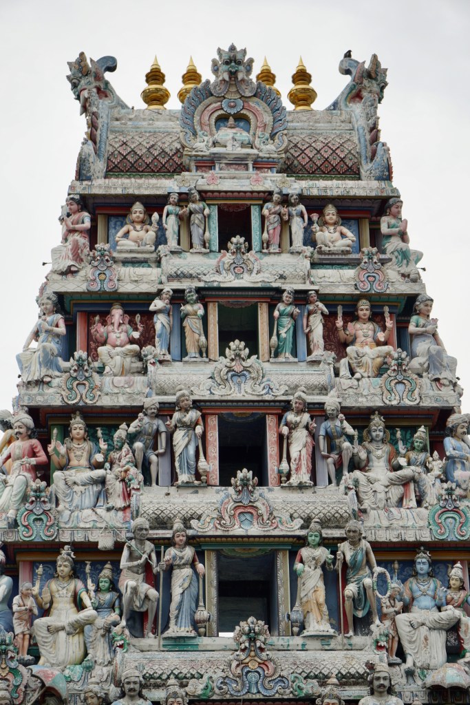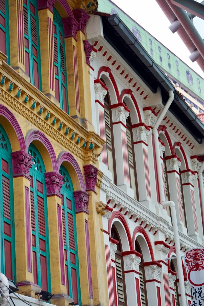 On the other side we felt adventurous and made our way by train to old China town to view the characteristic candy colored buildings and the Sri Mariamman Temple on its fringes. Dating back to 1827 (since restored several times) it is dedicated to the goddess Mariamman, who is believed to cure a range of illnesses and diseases. Ornate inside and with a beautifully adorned exterior of colorful painted stone sculptures, it is the oldest Hindu temple in Singapore.