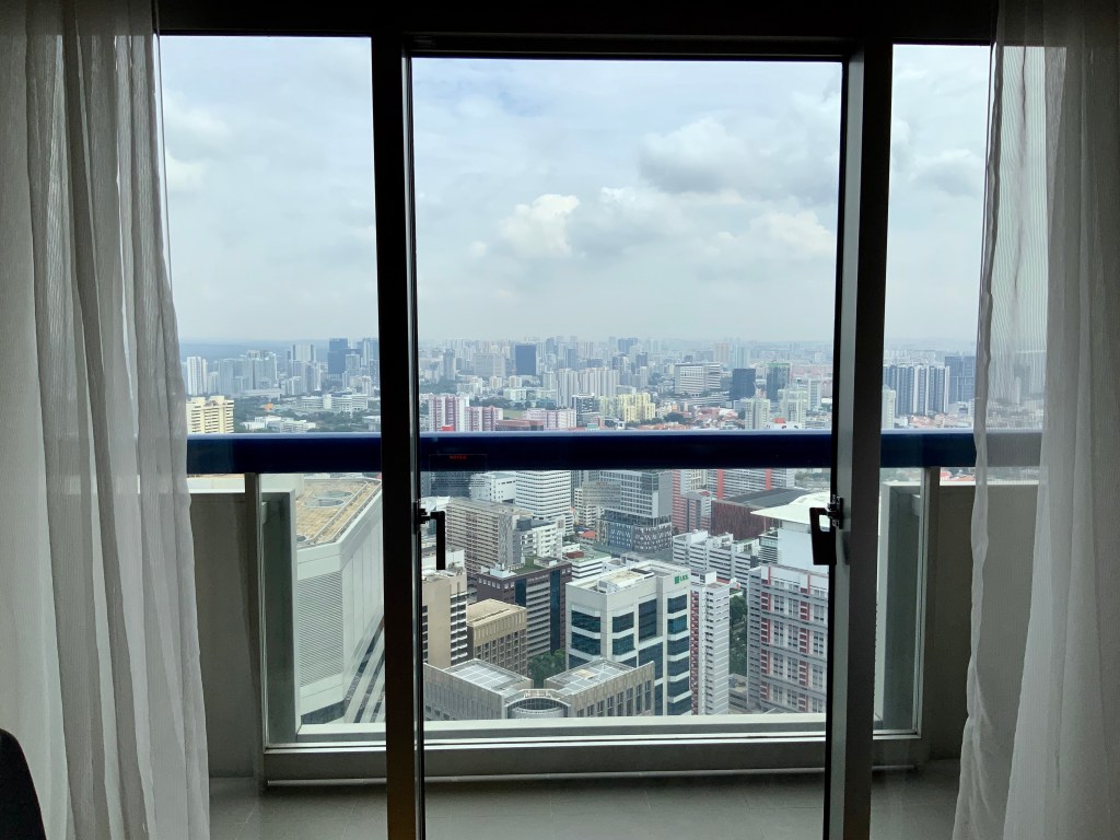 Bright eyed and ready for a big day in the humid tropical city we headed upstairs for our complimentary breakfast with its 360 degree views on the 65th floor in the Executive lounge. The Stamford for a long time was the tallest hotel in Singapore (70 floors) and even though this is our third visit to the city, the charm of the sky scraper and clean architecture views are still very pleasing. We both could visit it again – it’s so easy to have an enjoyable time.