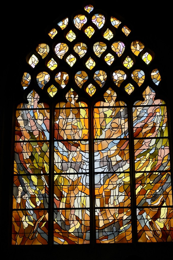 Next door was a charming cathedral being restored and we were unsure if we could enter, however we found our way inside and were rewarded by a very cosy and pretty church with a mix of traditional and modern glass. Some have a great vibe, others don’t seem to speak to us.