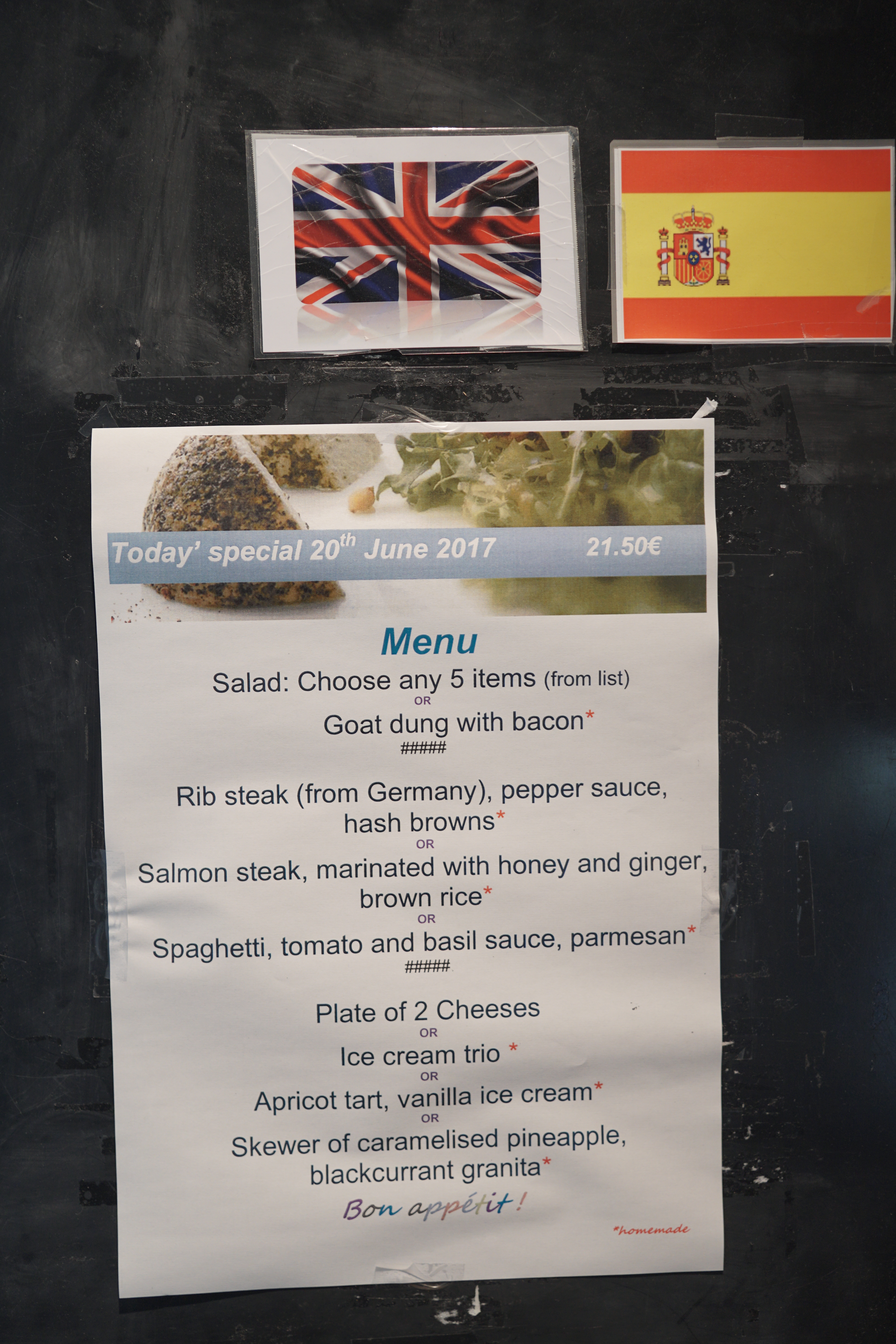 Menu at our hotel